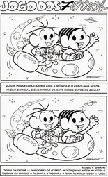 Comece agora a colorir online ou imprima e marque os 7 erros com lápis, caneta ou canetinha. Se quiser, veja também todos os desenhos da Turma da Mônica para colorir disponíveis em nosso site. Lembre-se que, como a Turma, você deve sempre fazer o bem a todos enquanto se diverte!